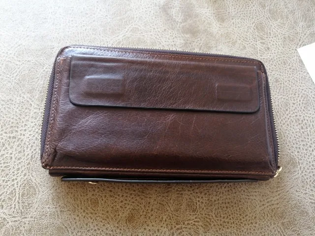 Сумка очень хорошая,ощущение что 100% кожа. Не пахнет,швы ровные. Муж довольный