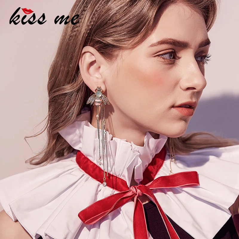 Женское Брендовое ювелирное изделие KISS ME, длинные серьги с бахромой, милые серьги-насекомое с кристаллами и пчелами, модные серьги
