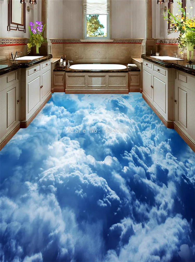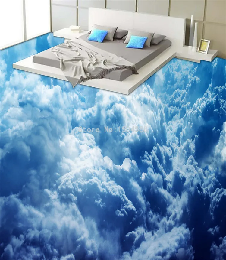 Самоклеящиеся настенные 3D-обои на заказ, для гостиной, спальни, ванной, из ПВХ, с изображением голубого неба и облаков
