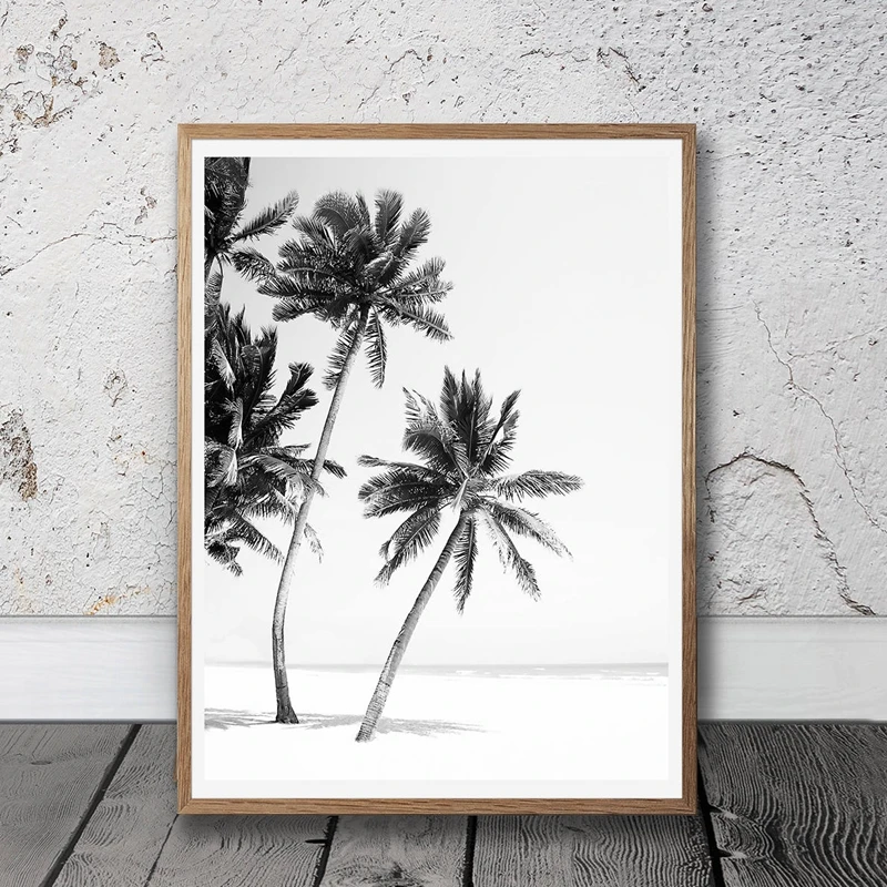 Пляжный художественный декор, черно-белые пальмы, принт на холсте, Пляжный Пейзаж, холст, картина на стену, картина для гостиной, домашний декор