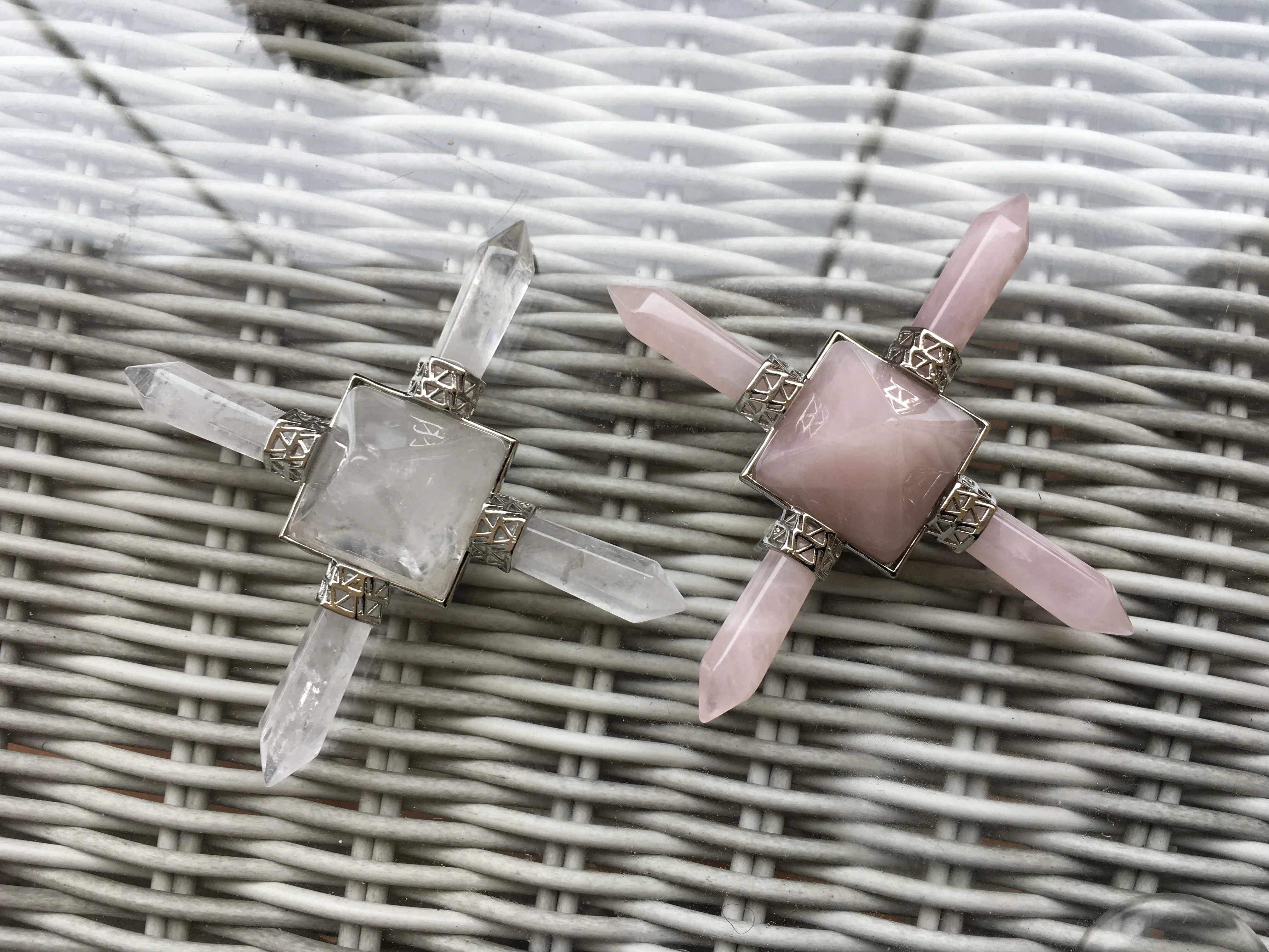 Белый кристалл, обсидиан, аметист и розовый кварц