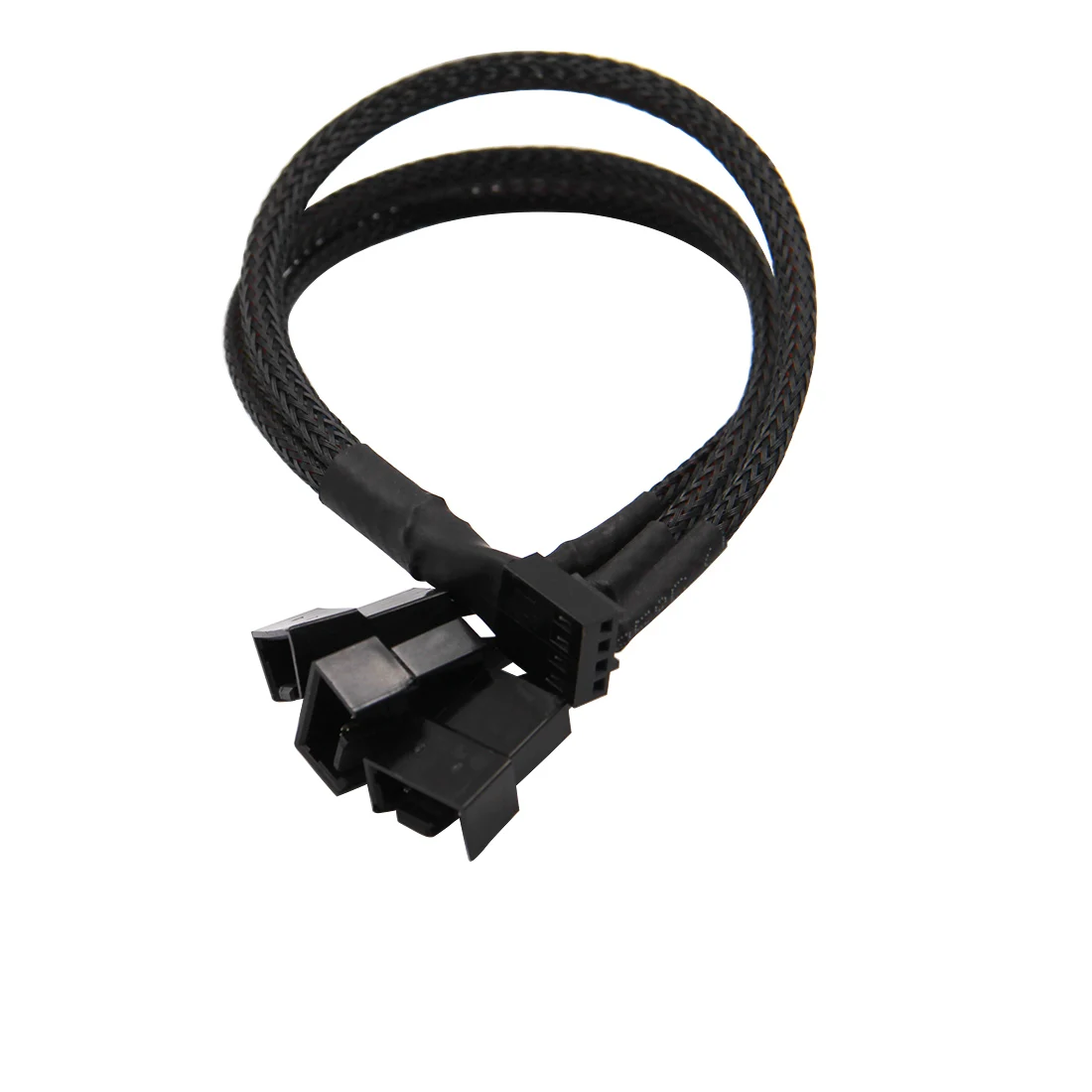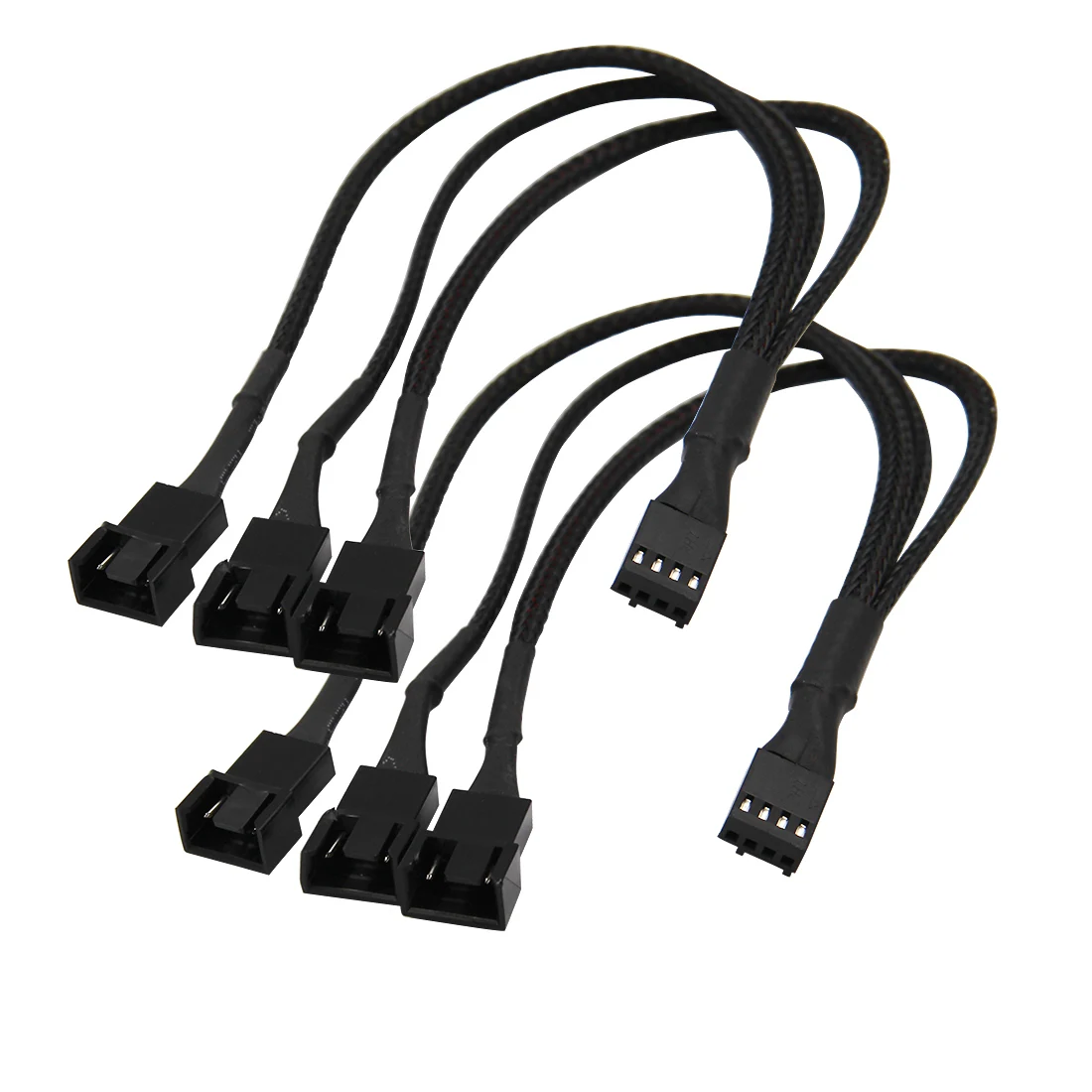 Технические характеристики Цвет: черный кабель в рукаве Калибр провода: Луженая медь 26AWG-провод UL1007 Длина кабеля: 6 дюймов каждый Разъем A: 1 - TX4 4-контактный гнездовой Разъем B: 1- TX4 4-контактный штекер 2-tx4 4-контактный штекер (только 3 провода, не хватает контакта тахометра) Напряжение: 12 В постоянного тока