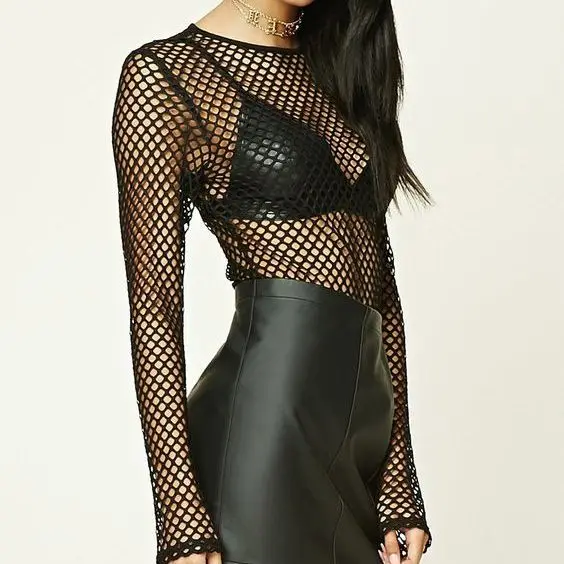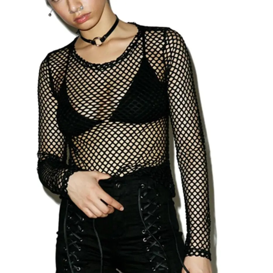 Женская сексуальная Сетчатая футболка, с длинным рукавом, летняя, модная, сетчатая, свободная, однотонная