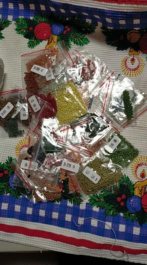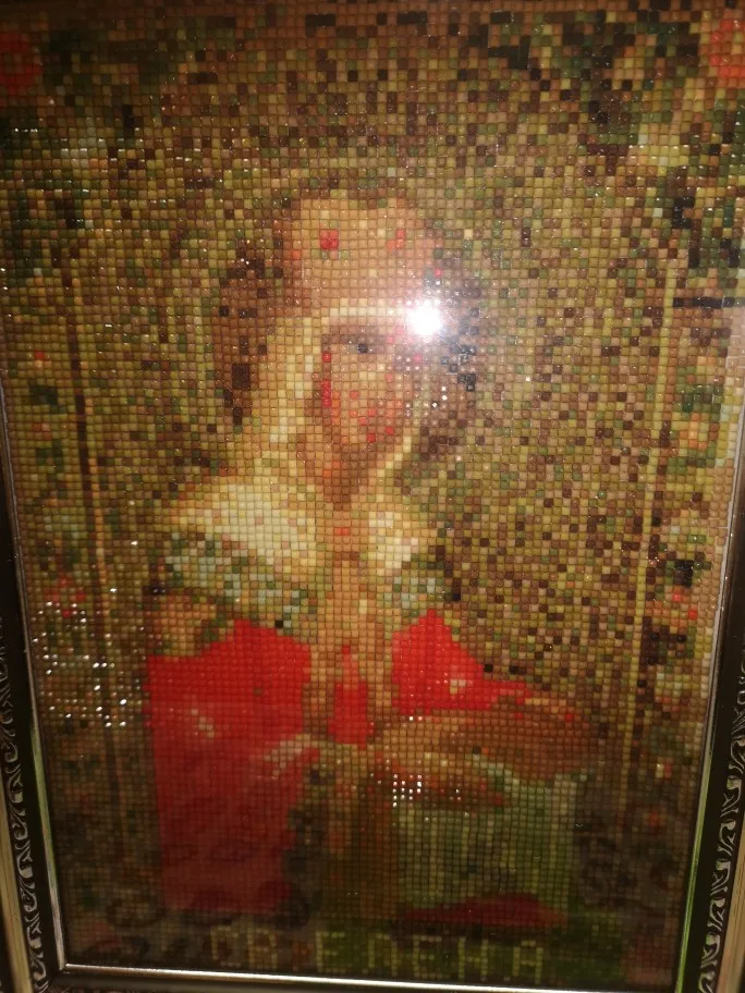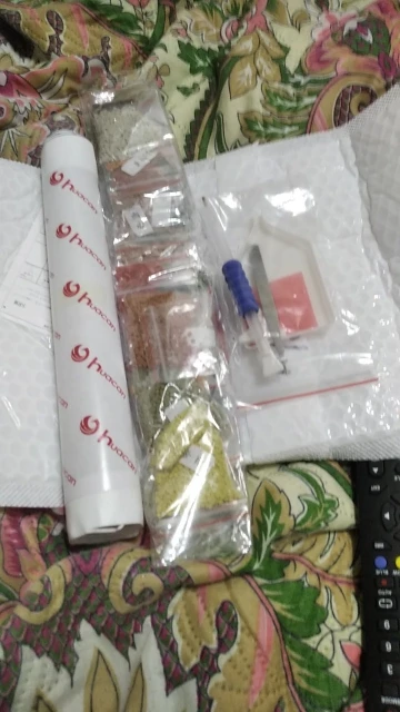 Получила картину за 55 дней. Упакована хорошо, в пакет-"пупырку". Сама картина намотана на валик, чтобы не помялась, и крепко обернута целлофаном. Область склеивания закрыта непрозрачной бумагой с логотипом Huacan. На холсте есть таблица соответствия цветов с DMC. Камешки акриловые непрозрачные квадратной формы, каждый цвет упакован в отдельный зип-пакетик чтобы было удобно открывать закрывать. На первый взгляд все камешки в комплекте, все 30 оттенков, и их немало, в работе будет видно точнее. Также в наборе есть инструменты: лоток, клей, пинцет, и ручка. Ручка многофункциональная, с одной стороны точечный наконечник, с другой для 4-х камешков, плюс ещё одна сменная насадка для 10-ти камешков. Ручка снабжена очень удобной противоскользящей муфточкой, приятно держать в руках. Я очень довольна, товар достоин похвал. Спасибо.