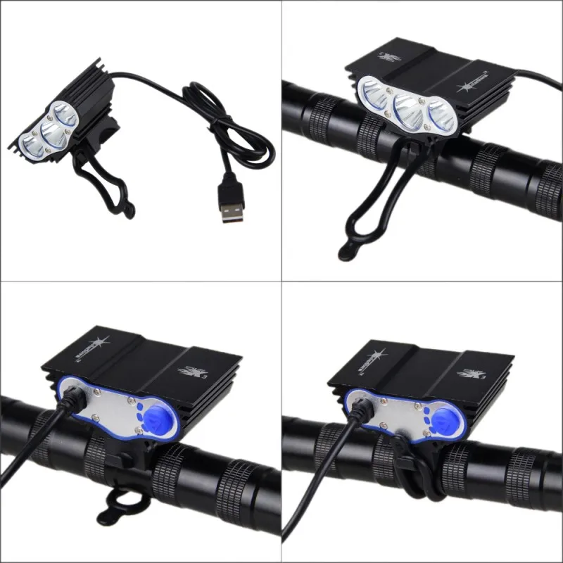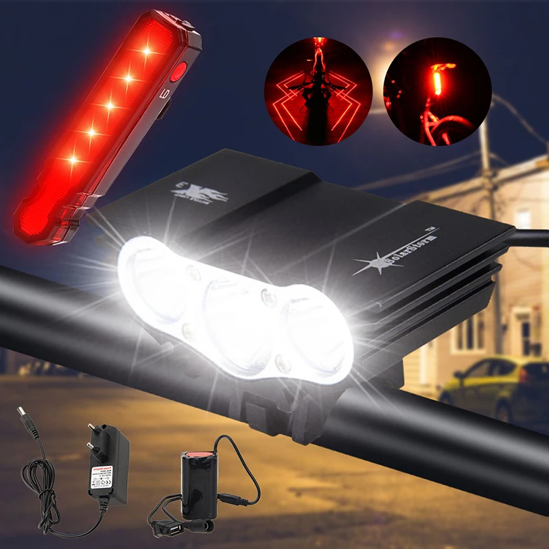 Водонепроницаемый светодиодный велосипедный передний фонарь с зарядкой от USB, велосипедный фонарь XM-L 3XT 6, светодиодный велосипедный Головной фонарь с предуПредупреждение лом о безопасности светильник рь
