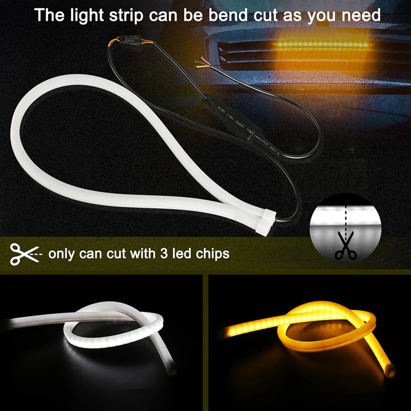 Дневные ходовые огни PAIEIMAI, гибкие, 30 см, 45 см, 60 см, 2 шт.