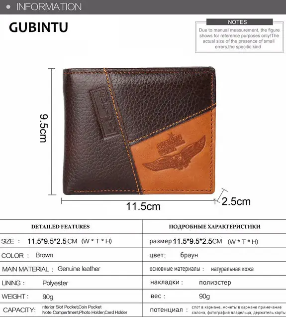 Кошельки GUBINTU мужские из натуральной кожи, бумажник на молнии с кармашком для мелочи, портмоне с орелом