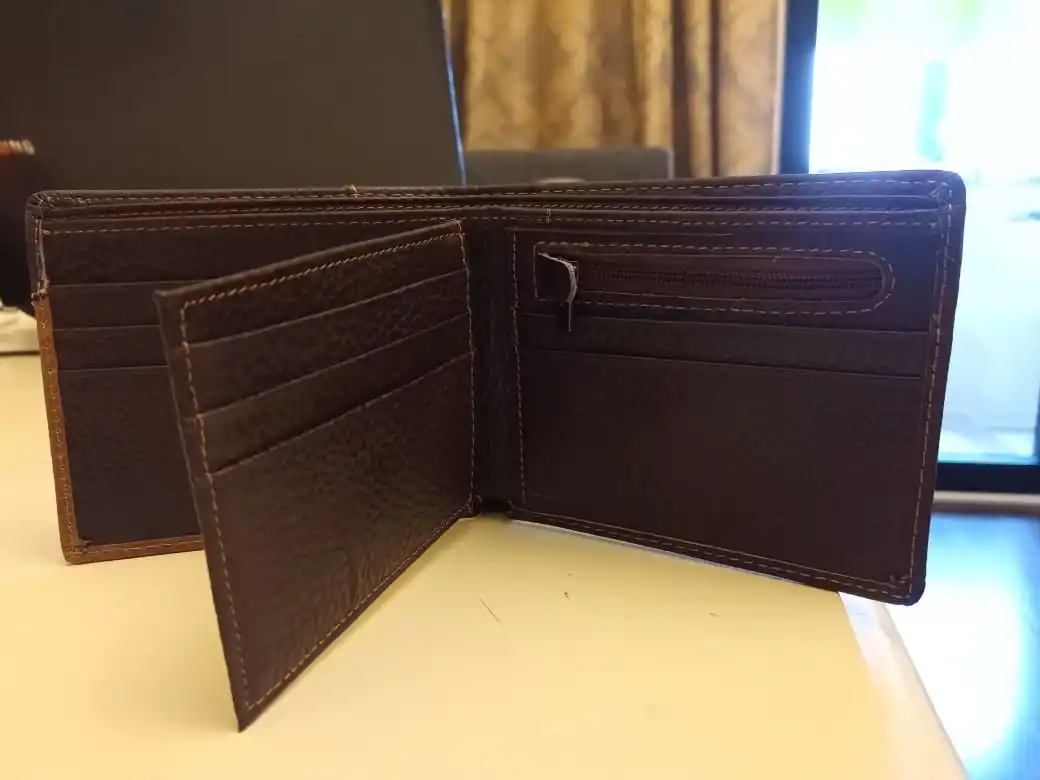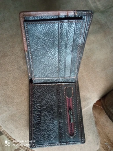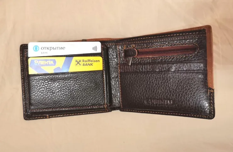 Очень классный портмоне. Натуральная кожа, много отделений для банкнот, карточек, мелочи. Но, хотелось бы чтобы была ещё и фиксируящая кнопка - у супруги на портмоне такая есть, но он козжам. Почему не сделали - вопрос, точно бы не помешало.