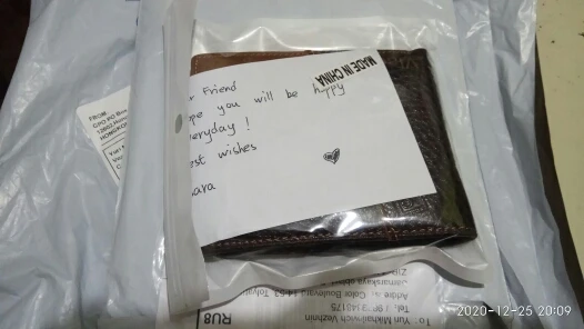 Должен сказать, что я очень доволен этим продавцом. Заказ прибыл очень быстро по сравнению с другими заказами, которые я сделал на Ali express. Бумажник выглядит так же, как в описании, и они даже оставили хорошую заметку, что на самом деле ощущают себя как новые для своих клиентов. Спасибо Sara за ваши любезные слова Я определенно рекомендую этого продавца❣②