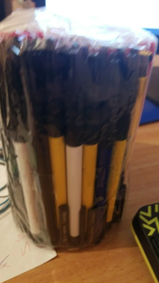 На рисунке изображена красивая коробка с ручками. В реальности вы получаете ручки в мешочке умеренного качества