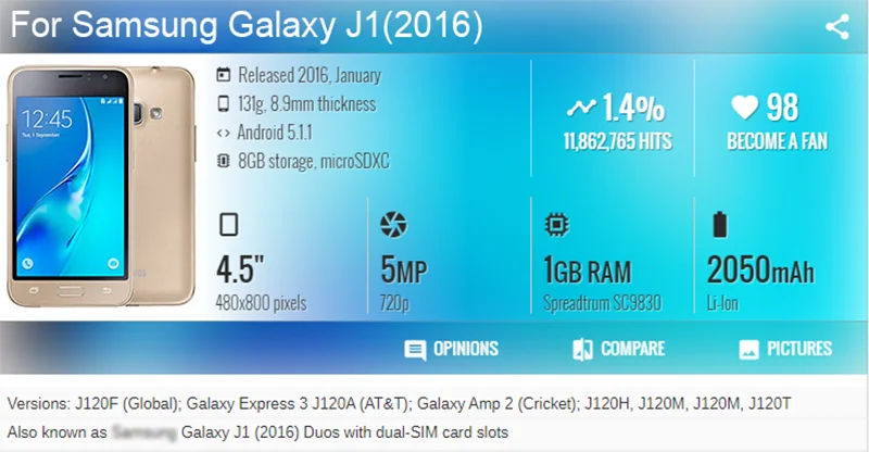 Номер моделиJ1 2016 J120 J120F J120H J120M