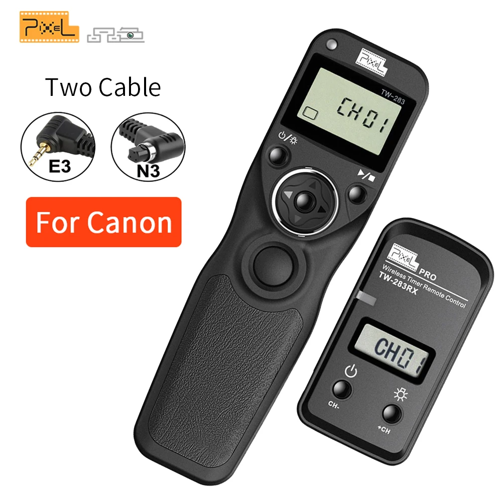 Беспроводной пульт дистанционного управления таймером Pixel TW-283N3 ЖК-спуска затвора с кабелем подключения E3 для цифровых зеркальных камер Canon EOS VS RW-221