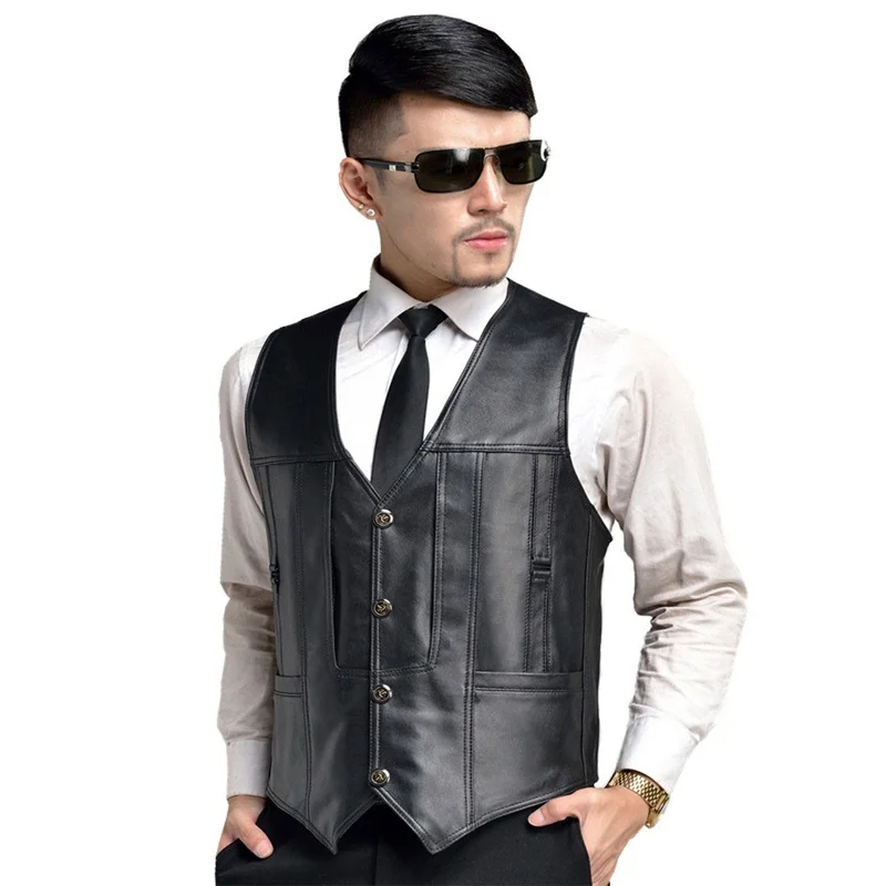Жилет мужской из натуральной овечьей кожи, жилет с мехом, натуральная кожа, большие размеры 5XL 6XL, весна-лето