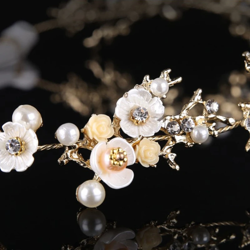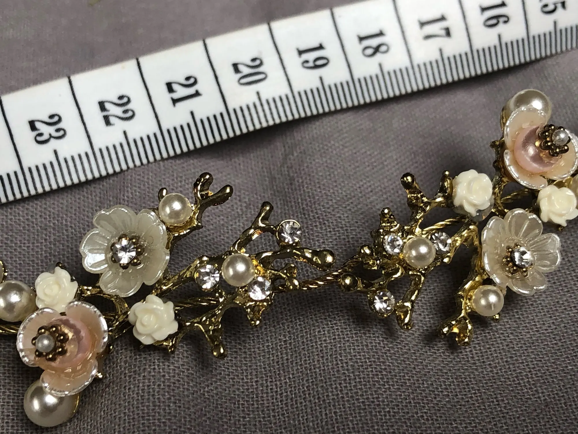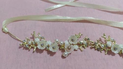 Повязка на голову женская, золотистаясеребристая, с цветами
