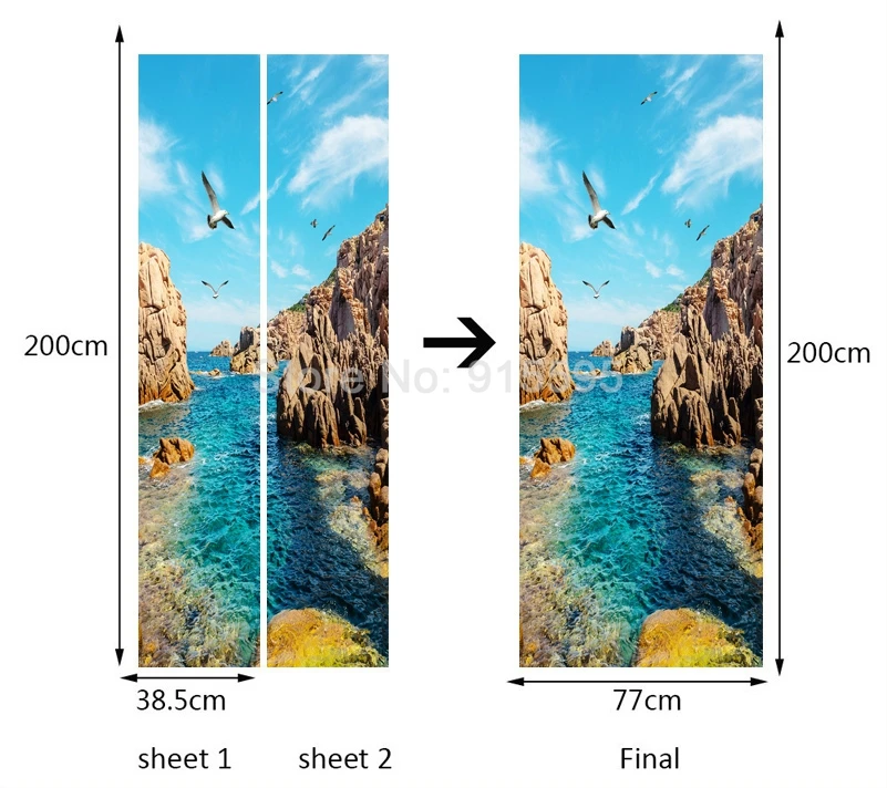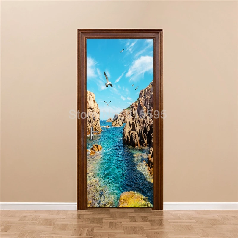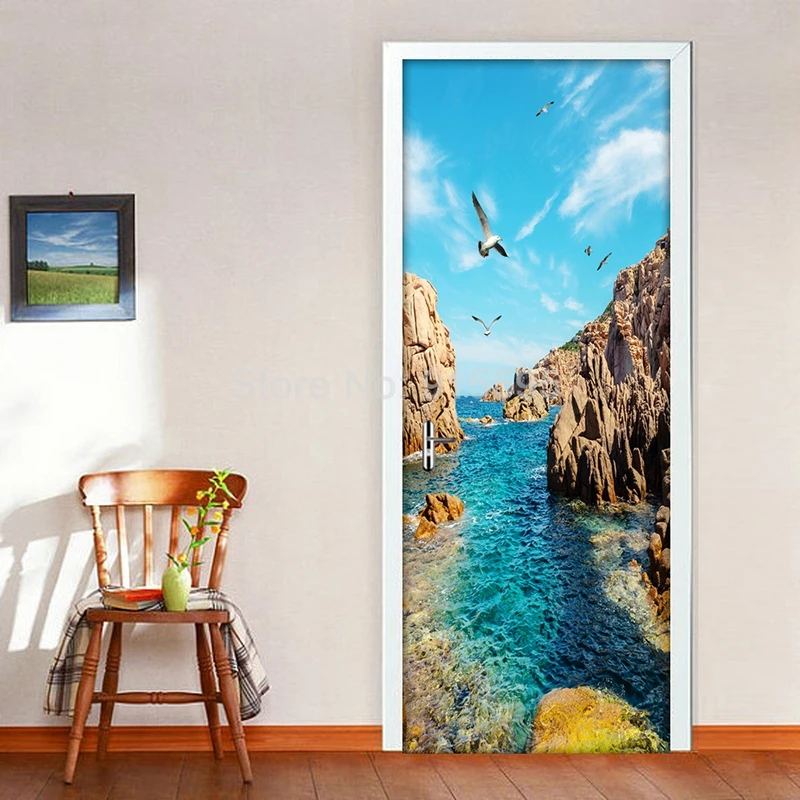 3D ПВХ водонепроницаемые наклейки на дверь, украшения для дома, настенные росписи, обои, сделай сам, декор для комнаты, спальни, двери, вид на море, постер, Настенная Наклейка