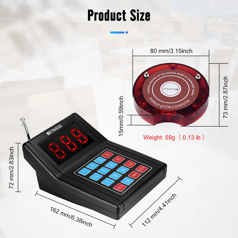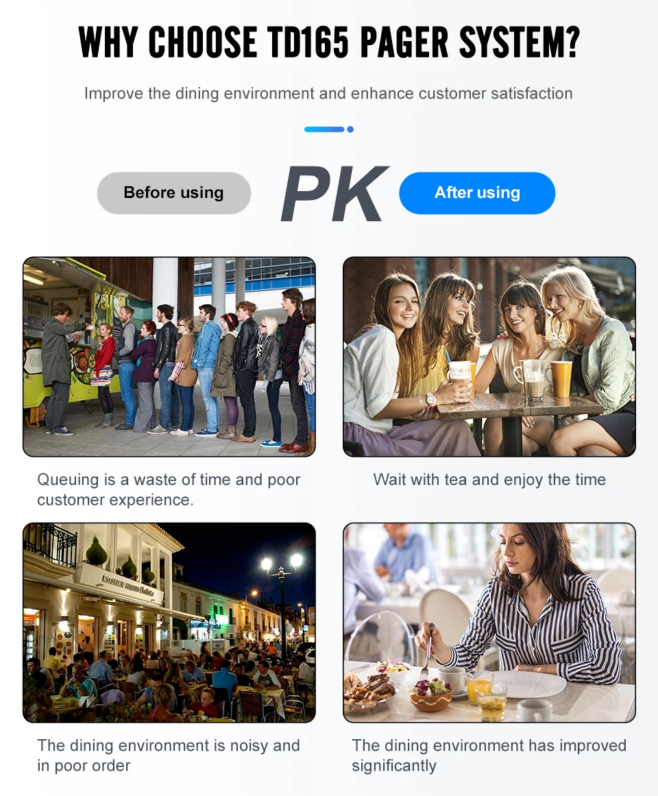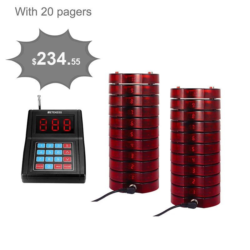 1. Может быть расширен до 999 пейджеров. Одна Зарядная база может заряжать до 10 пейджеров одновременно. Избегайте ожидания клиента в длинной очереди.