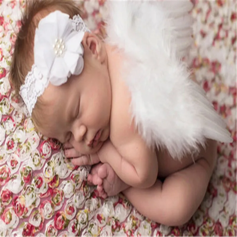 Милый реквизит для фотосъемки новорожденных мальчиков и девочек белые крылья ангела детская фотография перо Крылья аксессуары для волос для девочек 0-6 месяцев