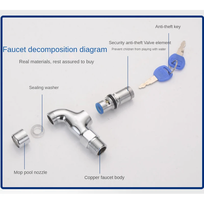 Кран для промывки воды BaIDaiMoDeng с замком, медный кран, одинарный уличный Противоугонный кран, датчик для кухни, на открытом воздухе