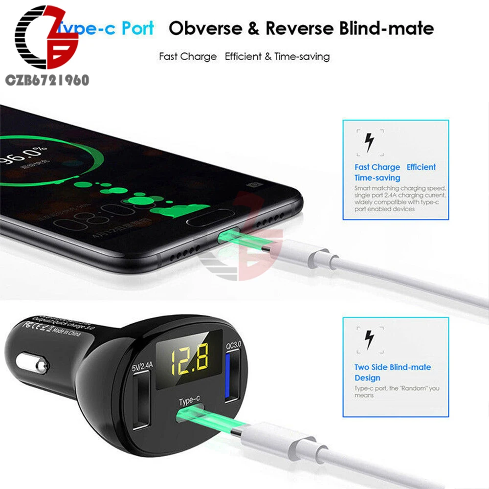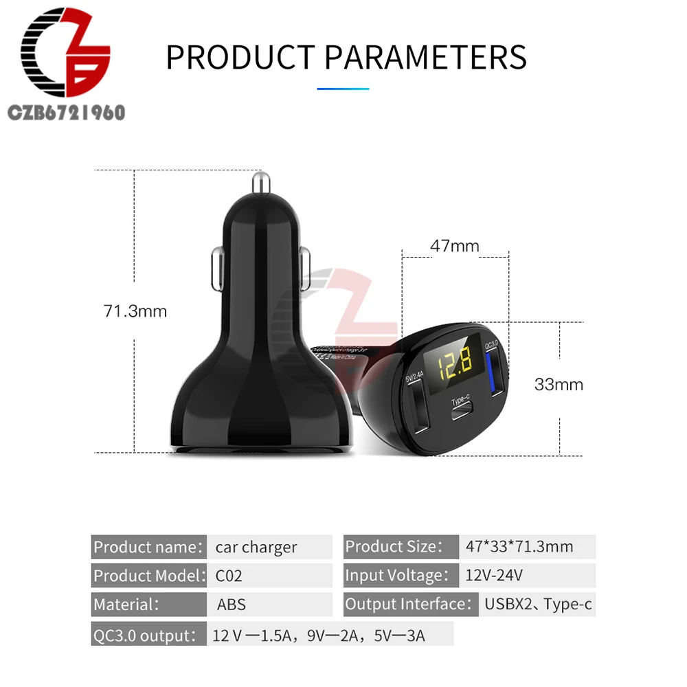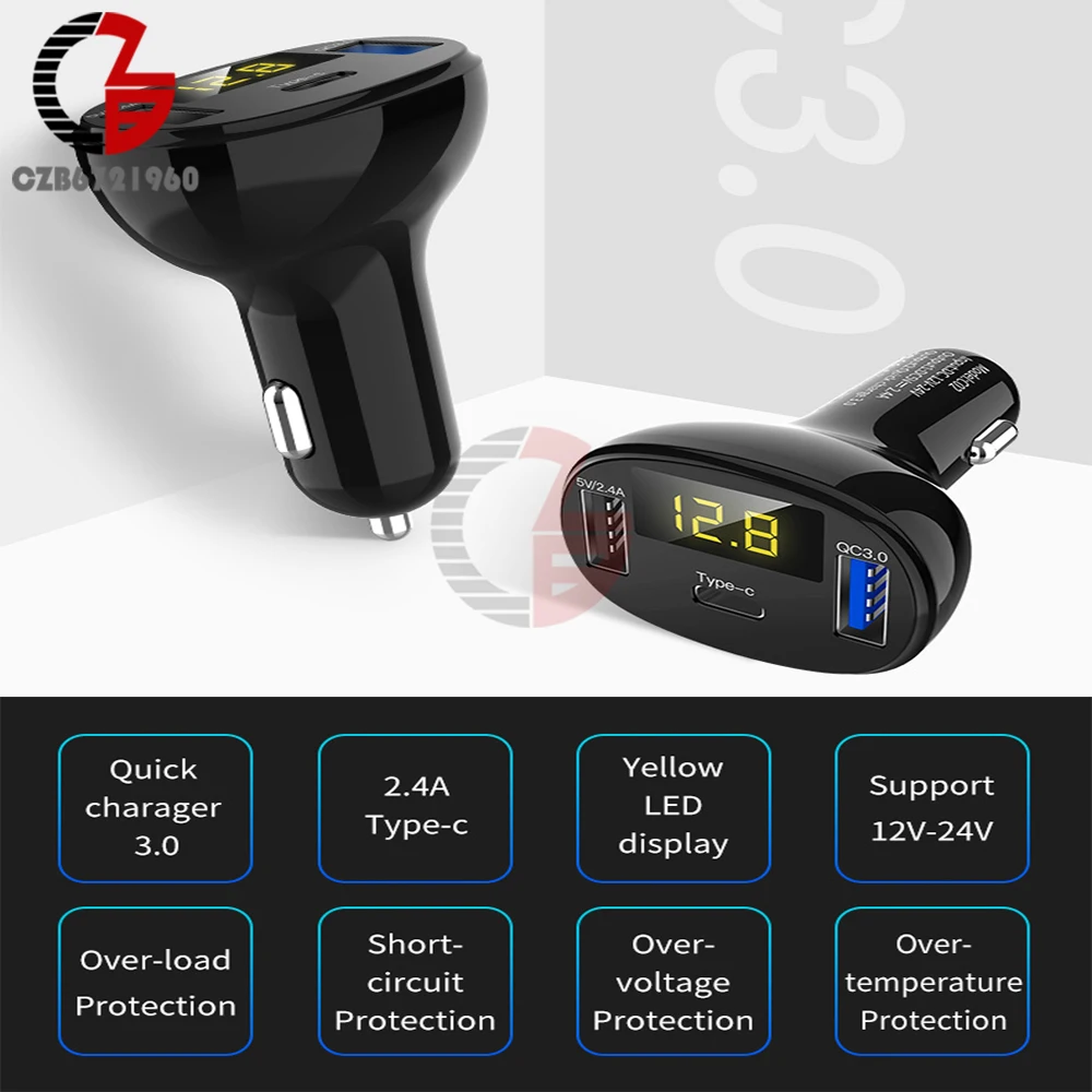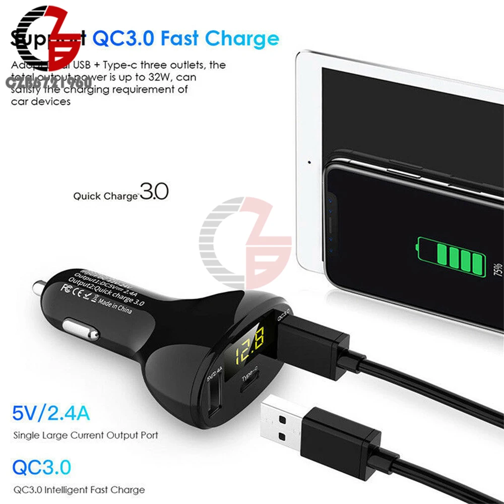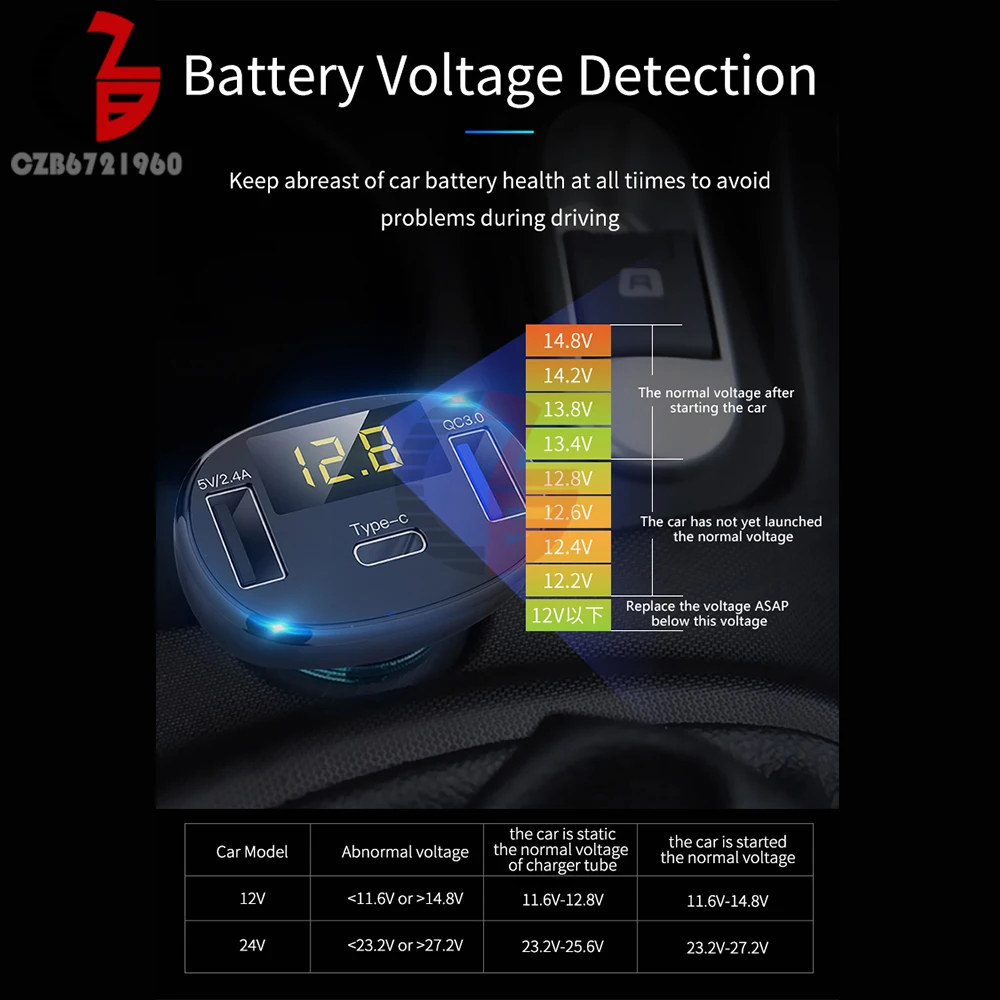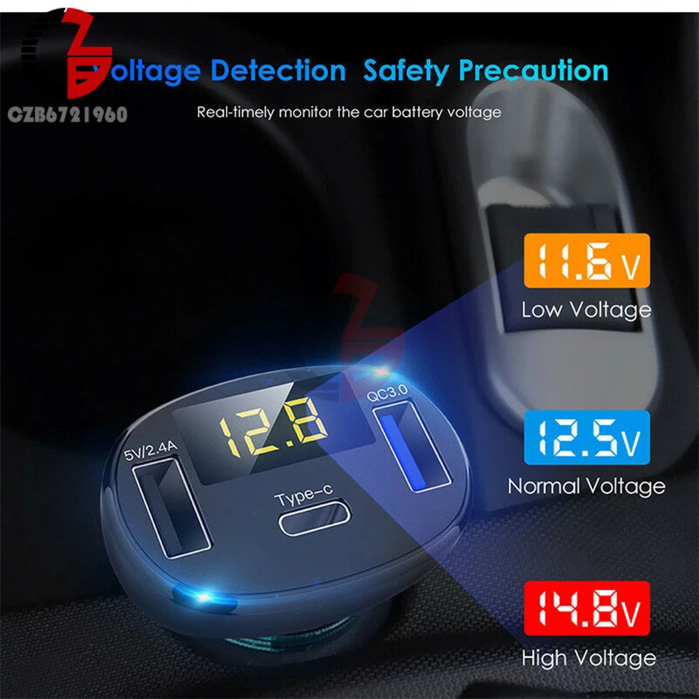 Автомобильное зарядное устройство, вольтметр, индикатор емкости аккумулятора 5 В, 12 В, 24 В, 2,4 А, 32 Вт