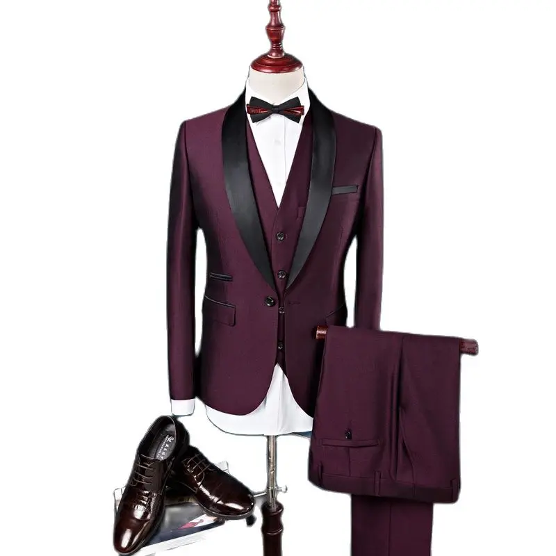 Темно-синие бордовые мужские свадебные костюмы, костюм из трех пред...