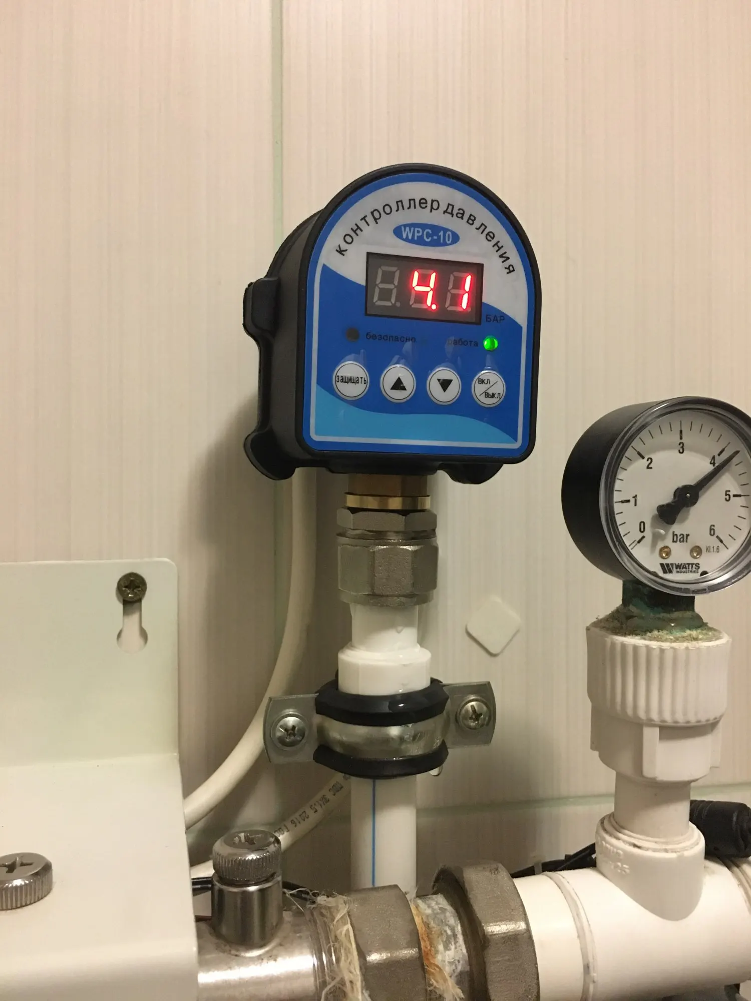 Работает хорошо но разница показаний 02 сотые, Минимальное заданное значение давления воды 1 атмосфера.