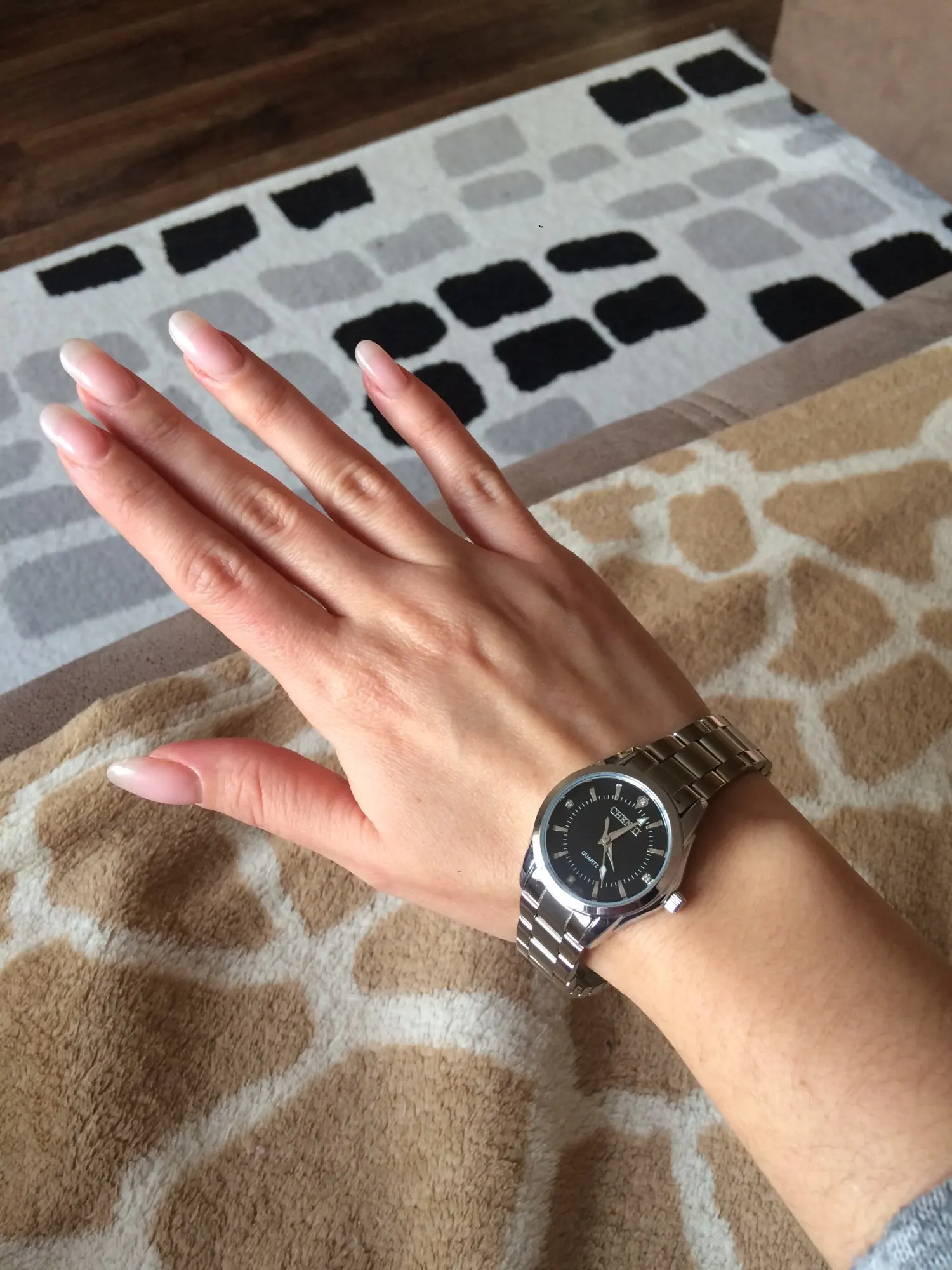 Часы очень хорошие, тем более за такую приятную цену, ожидала, что они будут немного больше, но в итоге на руке смотрятся очень хорошо. На фото только с распаковки, уже убрала звенья по размеру. Посмотрим в носке, почернеет ли браслет, хотя по состоянию мне кажется, что ничего с ним не произойдёт. Единственное, немного заедает застежка и снять получается не с первого раза, но может приноровлюсь. До Краснодара шли 10 дней. В общем очень довольна этими часами и действительно могу посоветовать их для покупки себе или даже на подарок(главное не раскрывать их цену), тот, кому вы подарите- никогда не догадается за какую сумму вы их взяли)))