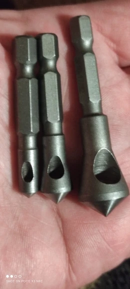 Ну так,зенкеры эти,на 4-ку. Пришлось доработать надфилем. Для металла не годятся,даже не пробуйте. Для металла берите желтые или коричневые кобальтовые с круглым хвостовиком. Эти доя дерева,ну я собственно их и брал для этого. Деревяшки зенкуют не плохо,хотя производительность данного типа зенкеров не самая лучшая в принципе. Нужна производительность - берите зенкеры в виде фрезы. Доставка до Ростова 2 недели.