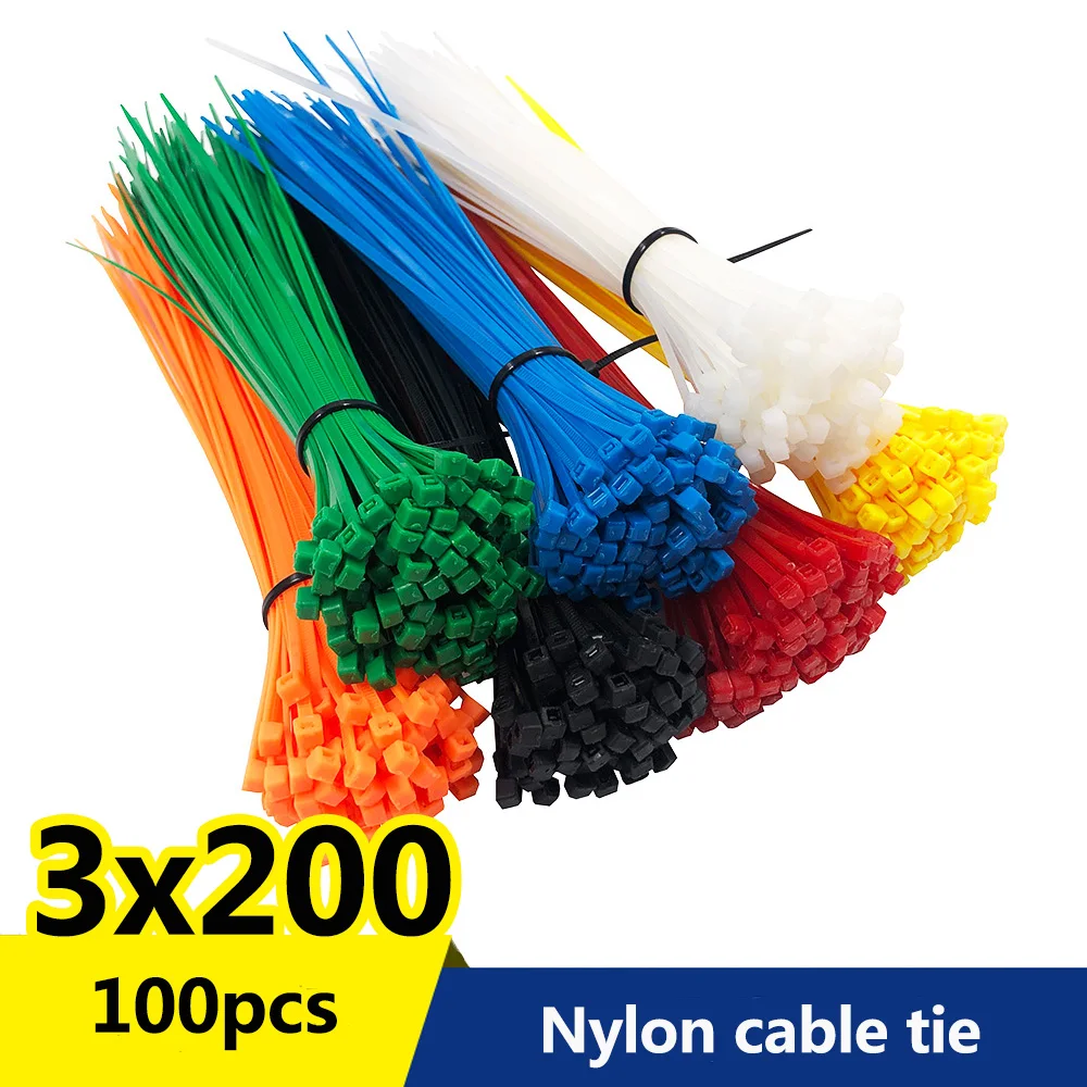 100 шт. 3x200 ширина 2,5 мм самоблокирующиеся белые черные красные синие желтые зеленые нейлоновые кабельные стяжки. Кабельные стяжки