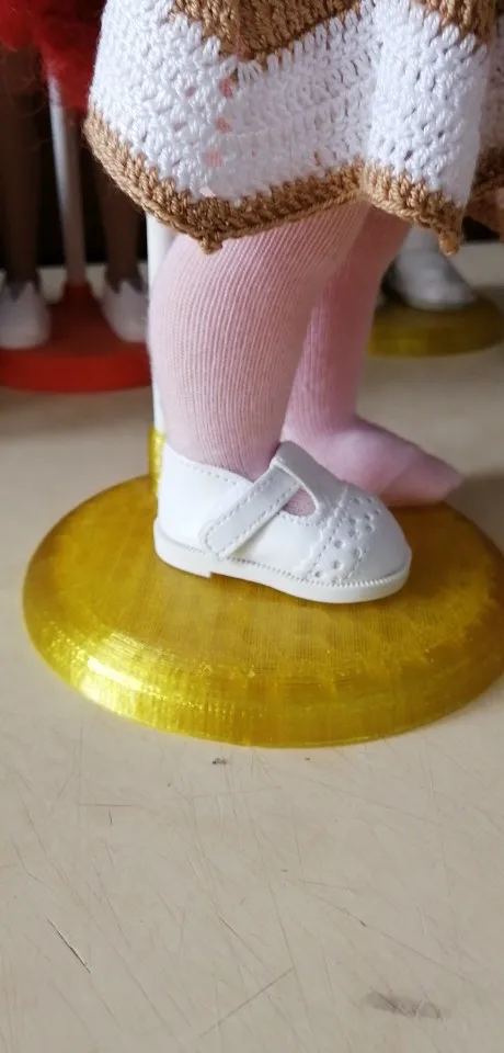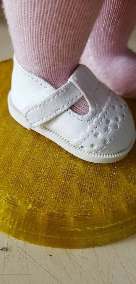 Туфельки просто чудо!!! Сшиты очень окуратно, качество отличное!!! Но на моих кукол Bjd не подходят. На Хлою 1/4 большие. На Bjd 60-70 см 1/3 в длинну маленькие и широковато. У меня нету подходящих какол Но сама обувь очень хорошая. Спасибо умельцам которые шьют так окуратно