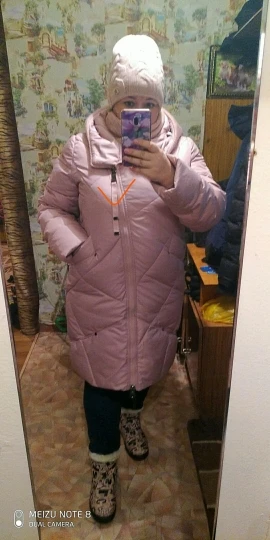 Прекрасный качественный теплый пуховик.Цвет пудровый. По размеру идеально подошёл, на свой 50 брала XXL. Я в восторге, честно!!! Спасибо продавцу за быструю доставку и хороший товар!