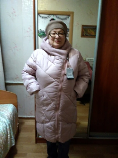 Приехала куртка!!! Отправка была, правда из Китая, но в обозначенные сроки доставки доставки уложились. Привёз курьер домой. Упаковка крепкая, всё доехало в целости. Сама куртка выше всяких похвал - ткань верха, подкладка, фурнитура, отделка! Заказ был для мамы, размер 5хл я выбирала по меркам продавца и отзывам. Село отлично, крой очень удачный, несмотря на то, что вещь зимняя, движения она не сковывает, застегивается вверху наглухо и при этом железная молния не возле лица. Единственное, что меня смутило, синий цвет очень-очень тёмный, при вечернем освещении выглядел почти чёрным. Но мама сказала - норм. Мерки наши - ОГ 110, ОБ 116, рост 160. Попросила матушку сфотографироваться в куртке, чтобы помочь другим сделать выбор. Так что выглядит вот так: