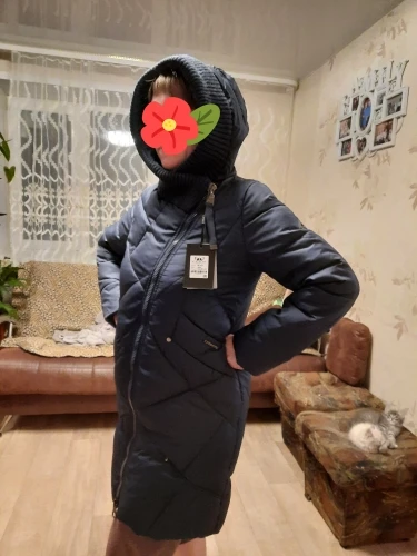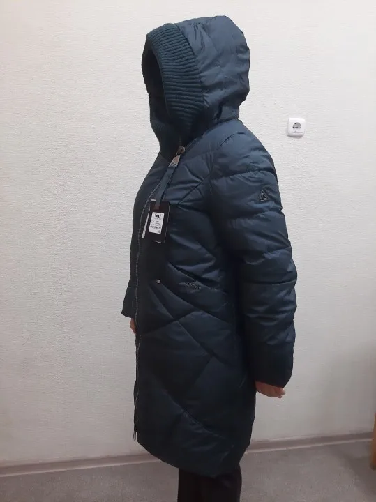 описание товара было довольно точным. единственное, считаю что взяла немного не тот размер. итак. одежду я покупала на али в данном случае во второй раз. подумала что верхнюю одежду брать проще: с размером ошибиться меньше вероятности.но всё же ошиблась. взяла M на параметры: 86-60-96. и этого оказалось мало. с плотным толстым свитером и штанами места остаётся мало. носить можно но немного скованы движения. поэтому если любите посвободнее: берите на размер больше. я ношу обычно 44. нужно было брать L(46). по цвету: фото мои максимально передают цвет. очень красивый насыщенный изумруд, не в чёрный и не в светлый. очень густой цвет. из пакета сразу же никакого запаха: достойная по качеству вещь. видно сразу что это фабричный пошив. красивая фурнитура, все замки закрыты пленкой, замок качественный крупный. особый шарм модели придаёт вязанный капюшон, затягивающийся кулиской. я как раз на эту модель обратила внимание из-за капюшона. обратите внимание: наполнитель синтепон.