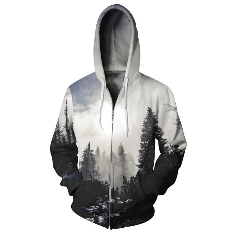 Cloudstyle 2021 3D Толстовка с капюшоном на молнии, мужская толстовка с 3D принтом леса, толстовка с длинными рукавами, верхняя одежда, большие размеры, спортивные костюмы, шапка, куртка