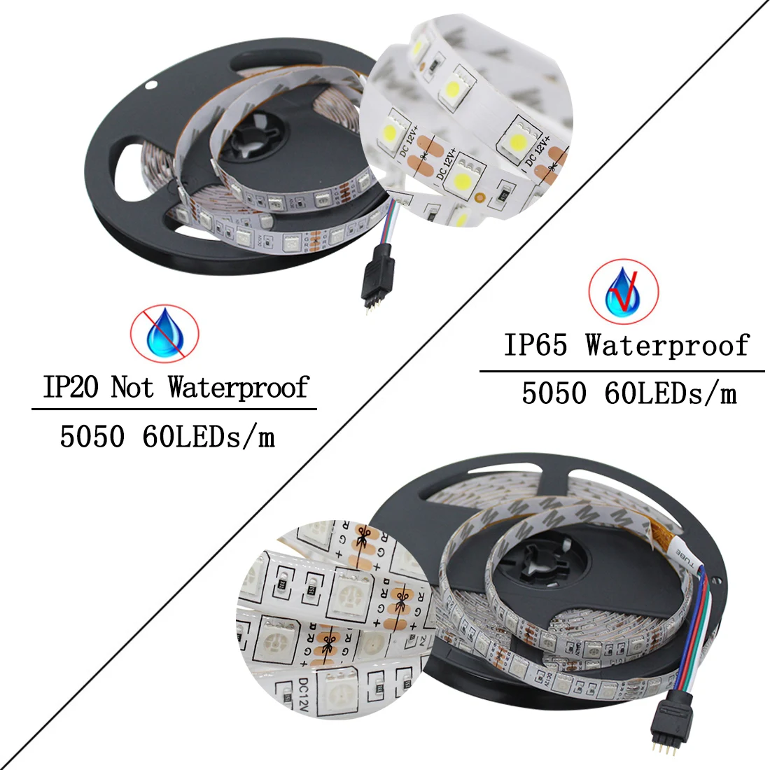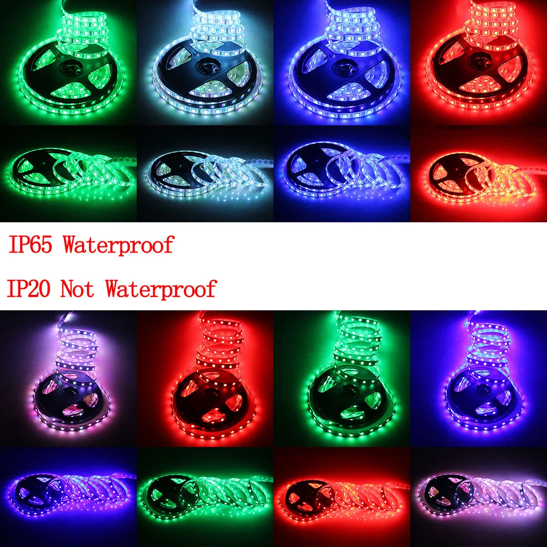 Laimaik Водонепроницаемый светодиодные полосы IP65/IP20 LED Гибкий свет LED лента, 5 м 300 светодиодных чипов DC12V SMD5050 RGB/белый/теплый белый