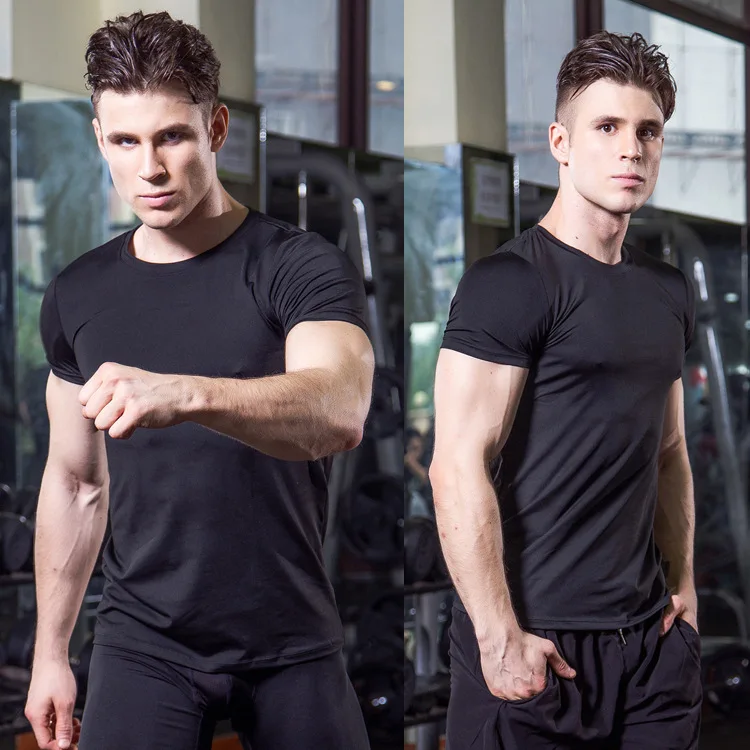 Брендовая одежда для фитнеса, Однотонная футболка с короткими рукавами, Мужская облегающая термо-компрессионная рубашка для бодибилдинга, облегающий топ для тренировок