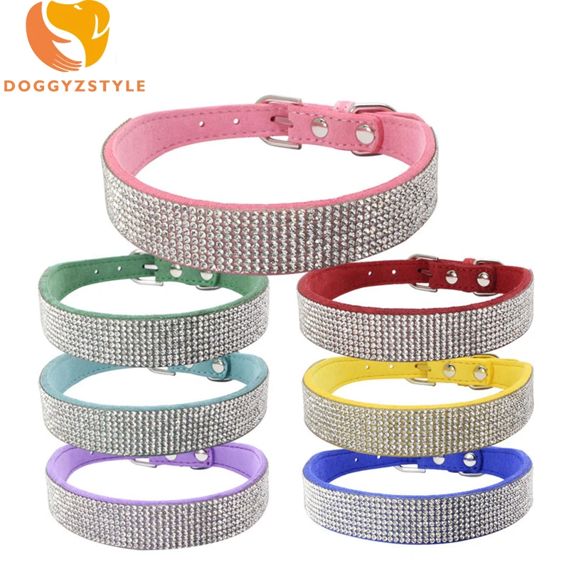 Блестящие стразы, ошейник для собак, Регулируемая пряжка, ожерелье для маленьких больших собак, двойные стразы, товары для чихуахуа, DOGGYZSTYLE