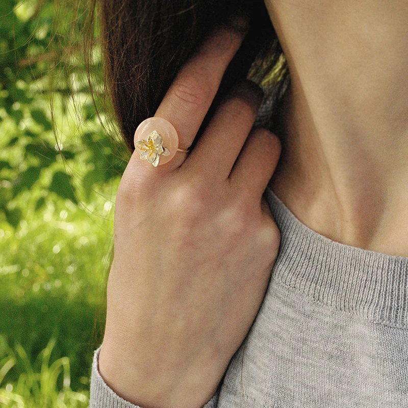 Lotus весело Настоящее стерлингового серебра 925 натуральный розовый камень творческий ручной Fine Jewelry лотоса шепчет кольцо для женщин brincos