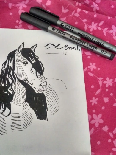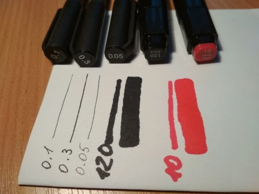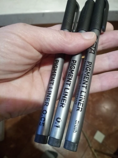 Отличное качество ручек. После высыхания линия не размывается водой, то есть можно работать акварелью или маркерами и ничего не размажется.