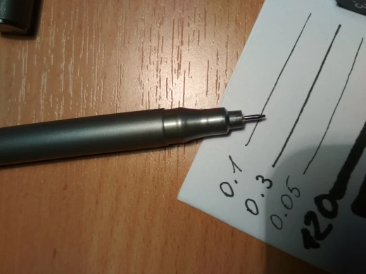 линер пришел отличный, но, видимо из-за того, что 0.05 мм, плоховато пишет... в целом все хорошо, но огорчает, что много с ним не полайнишь.