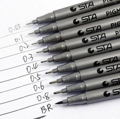 Пигментный лайнер Pigma Micron, 1 шт., чернильный маркер 0,05, 0,1, 0,2, 0,3, 0,4, 0,5, 0,6, 0,8, черные ручки для рисования Fineliner с разным наконечником