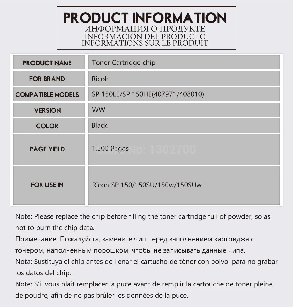 1,5 K SP150LE 150LE чип картриджа с тонером для Ricoh Aficio SP 150...
