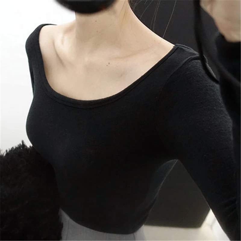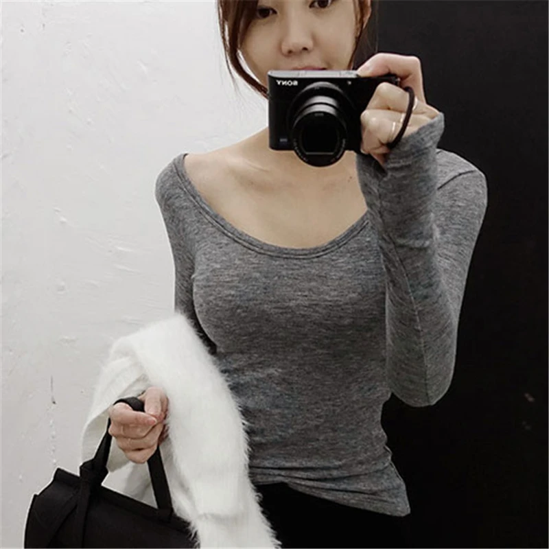Новая весенняя Сексуальная футболка, Женская эластичная футболка в Корейском стиле, женская одежда, тонкая футболка, женские обтягивающие топы с длинными рукавами