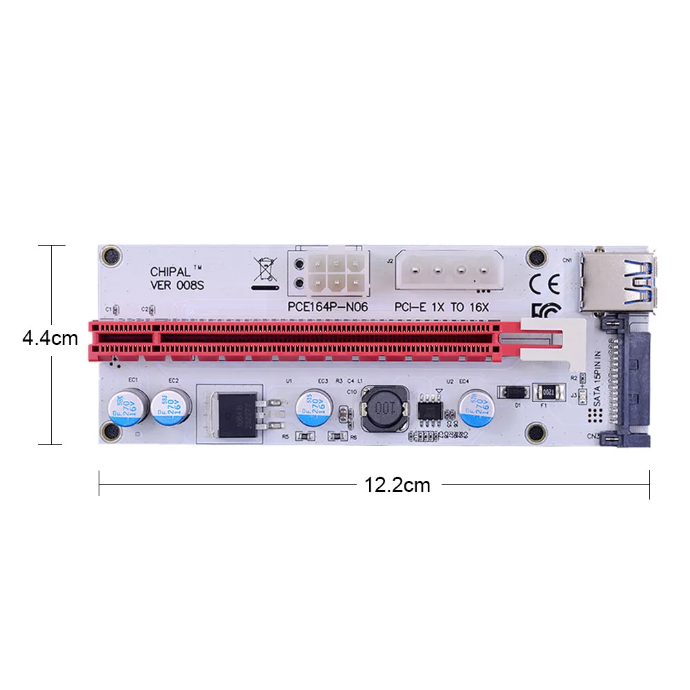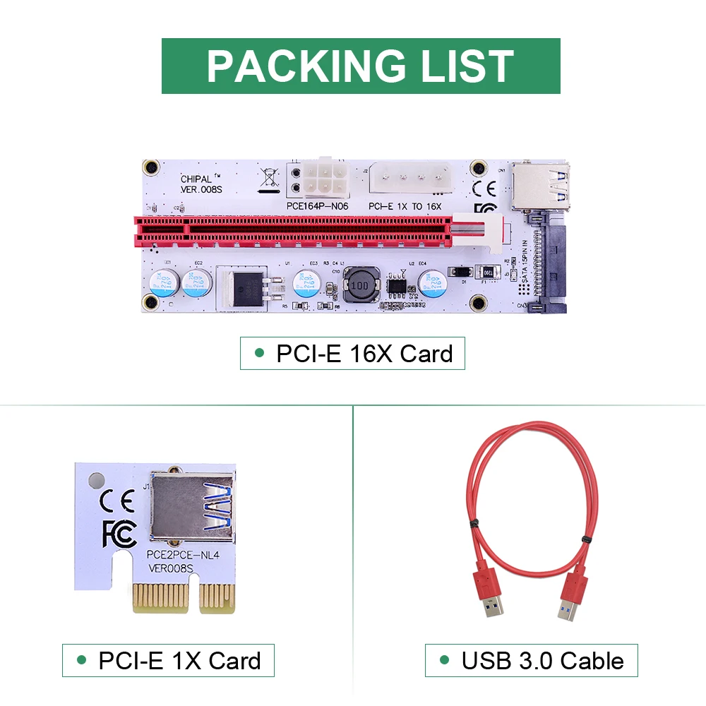 CHIPAL VER008S PCI-E Райзер-карта 008S PCI Express 1X до 16X 60 см 100 см кабель USB 3,0 4-контактный 6-контактный разъем SATA питания светодиодный для видеокарты