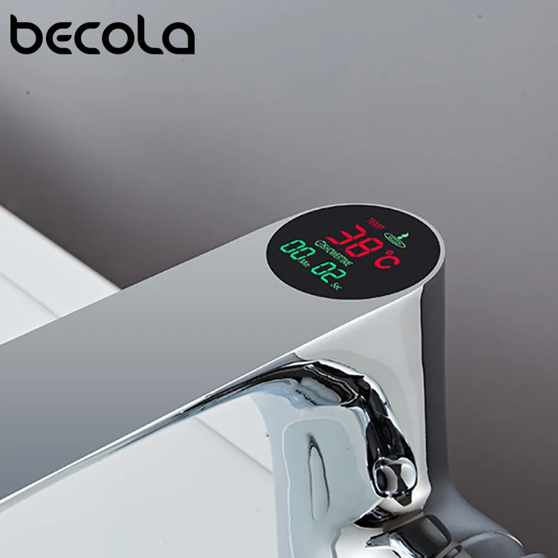 Светодиодный термометр BECOLA, смеситель для ванной комнаты, твердая латунь, хромированный кран для раковины, для холодной и горячей воды