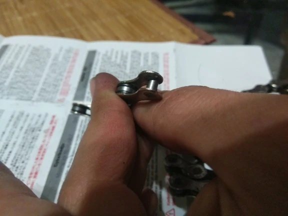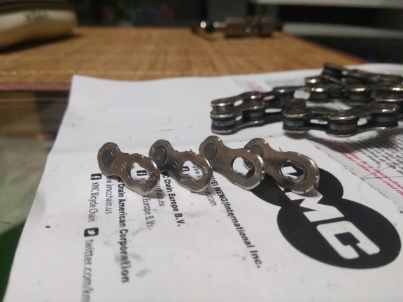 Я сломал цепь во время первой поездки. Прямо рядом с замком. По сравнению с оригинальной цепочкой, купленной с велосипедом, этот выглядит как обман. Замок с моей старой цепи справа на первых двух фотографиях. И вся цепочка выглядит так же. Ссылки в основном выглядят так же, как и замки. По сравнению с тем, что у меня есть, они более глянцевые, но не такие полированные и плоские. Края не такие четкие и точно изготовленные. Даже моя дешевая ($6 или около того) цепь для старого 8-скоростного MTB выглядит намного лучше