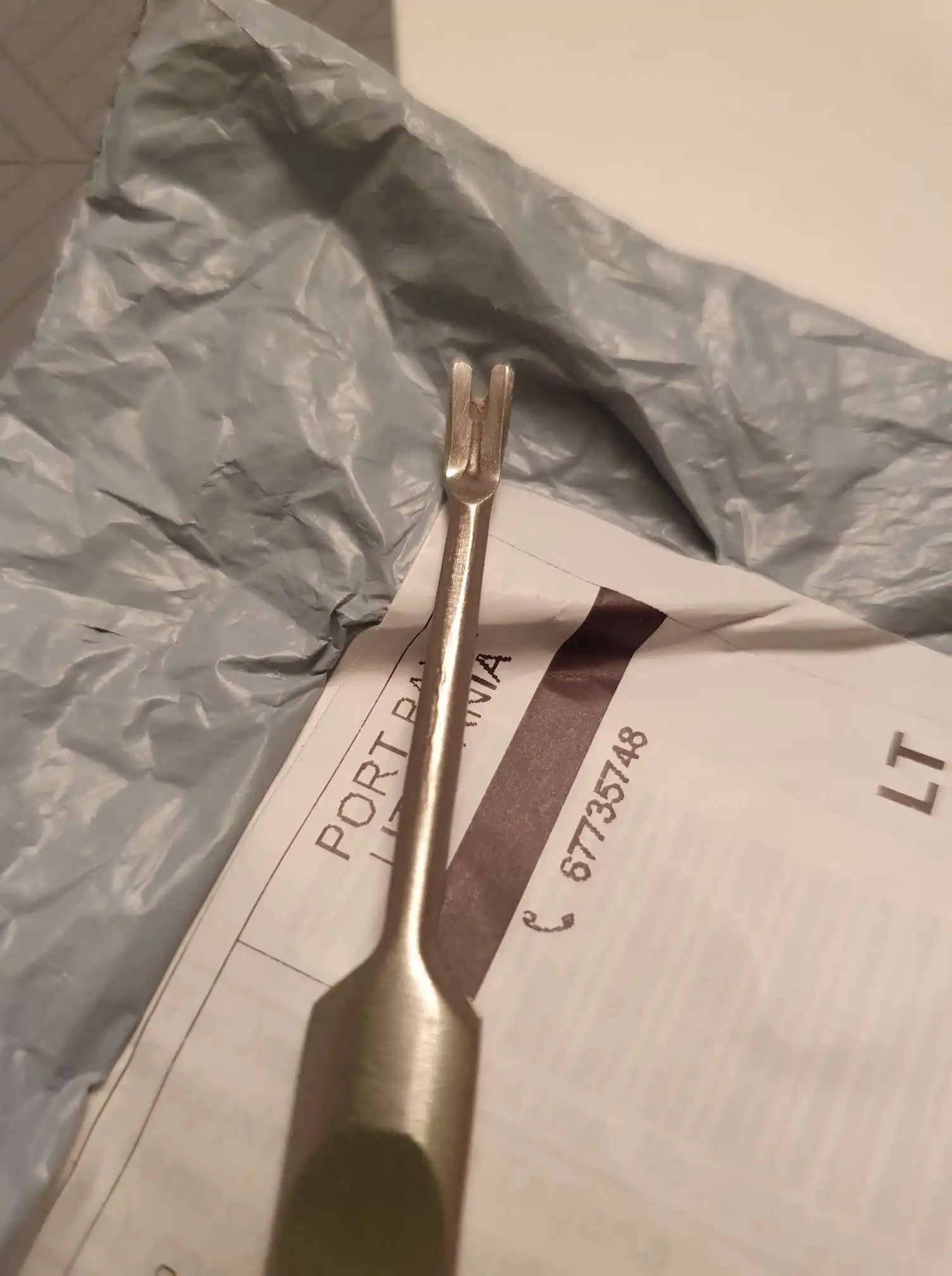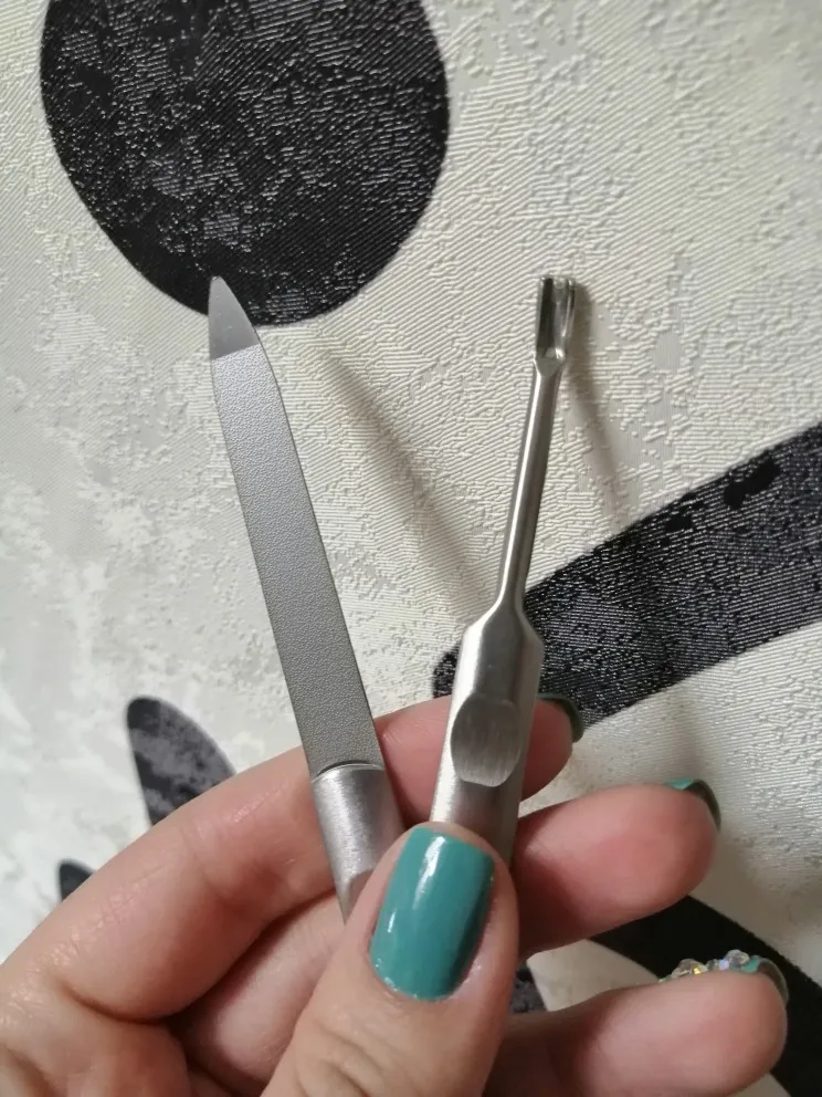 Очень острый, режеть легко кутикулов, бросили в ящик, тяжёлый нержевей сталь. Рекомендую на 100%,соответственно описанию. Спасибо продавцу за товар ✌️
