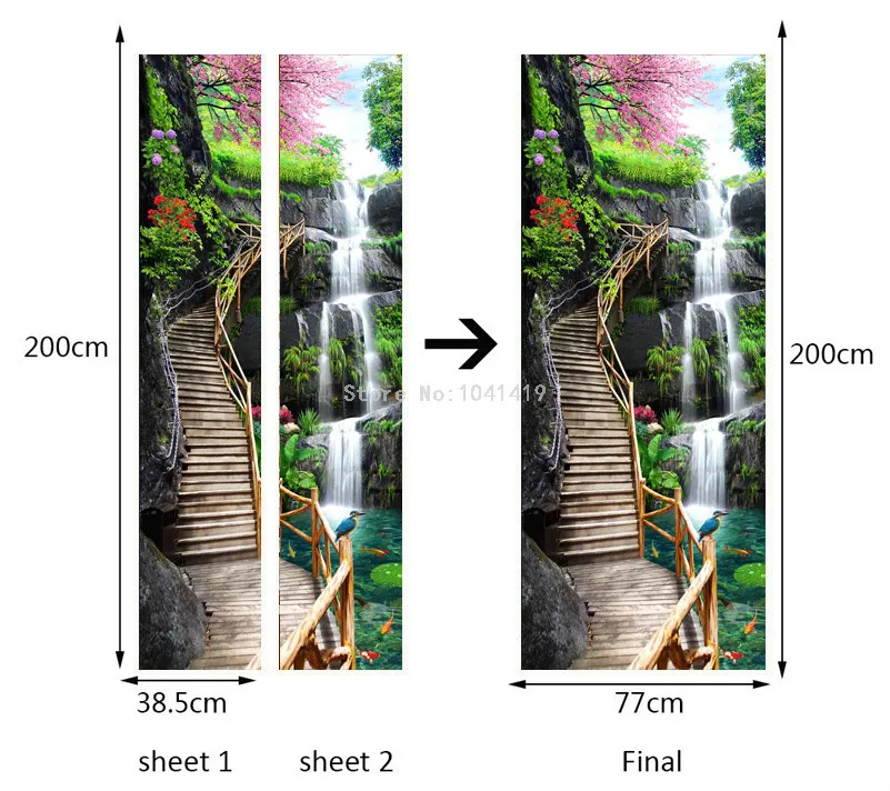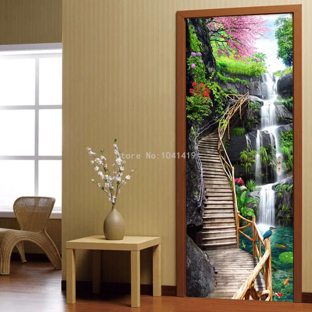 3D обои в китайском стиле, водопады, природа, пейзаж, дверь, наклейка, фото, настенная живопись, ПВХ, самоклеящаяся, 3D, домашний декор
