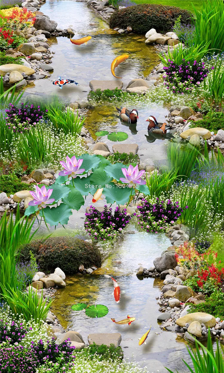 Самоклеющиеся водонепроницаемые 3D обои для пола, ПВХ, классические настенные фрески для парка, потока, спальни, торгового центра, рулон обоев