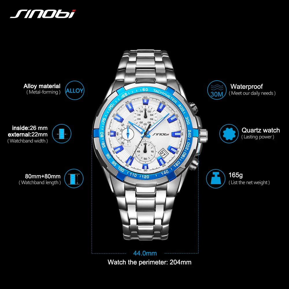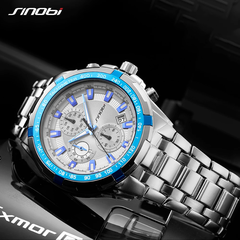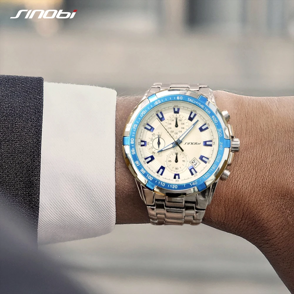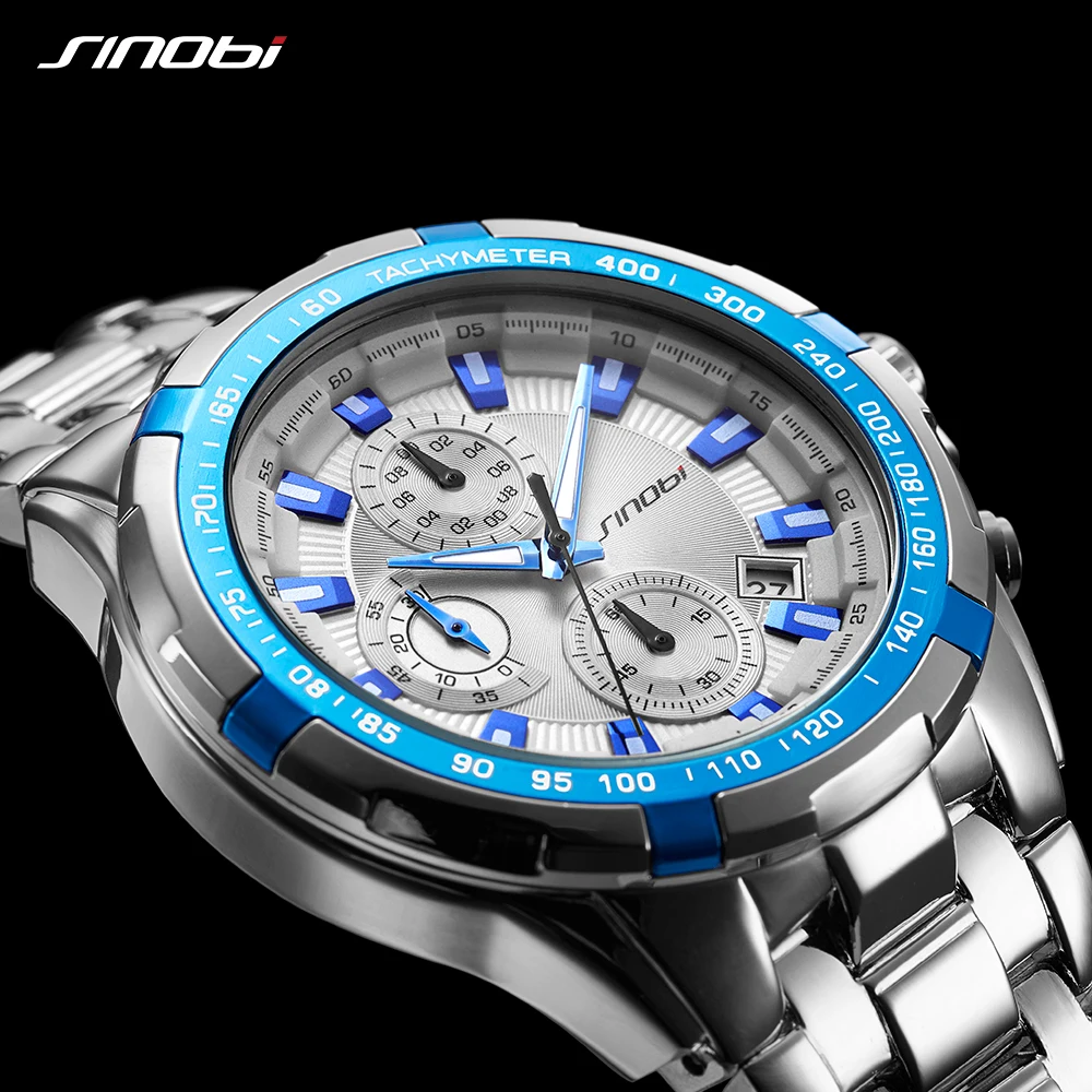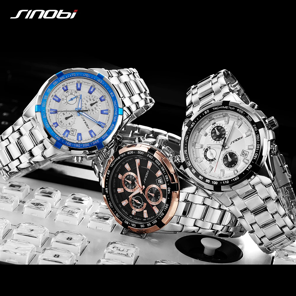 Часы наручные SINOBI с хронографом, креативные Роскошные водонепроницаемые деловые кварцевые спортивные, с верхним ремешком