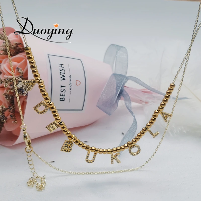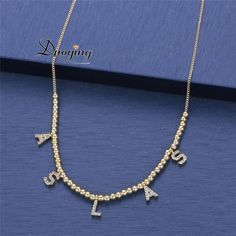 DUOYING 6 мм проложить ожерелья с буквой персонализированное Имя ювелирные изделия ожерелья в подарок уникальные буквы 3 мм шарики ожерелья подарки icon star icon star icon star icon star icon star